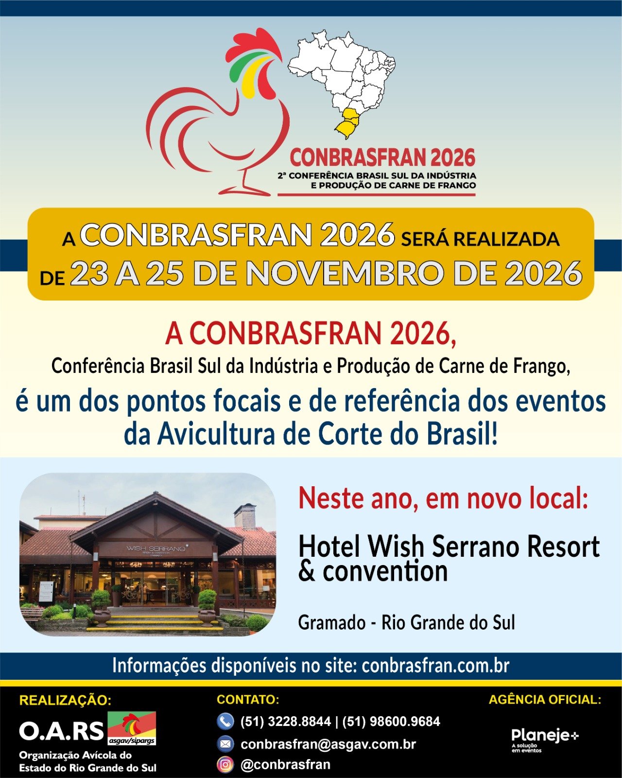 A CONBRASFRAN 2026 – Conferência Brasil Sul da Indústria e Produção de Carne de Frango, vem para ser um dos pontos focais e de referência dos eventos da Avicultura de Corte do Brasil!